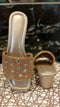 "Elegant pencil heels featuring comfortable cushioning and adorned with while pearls.